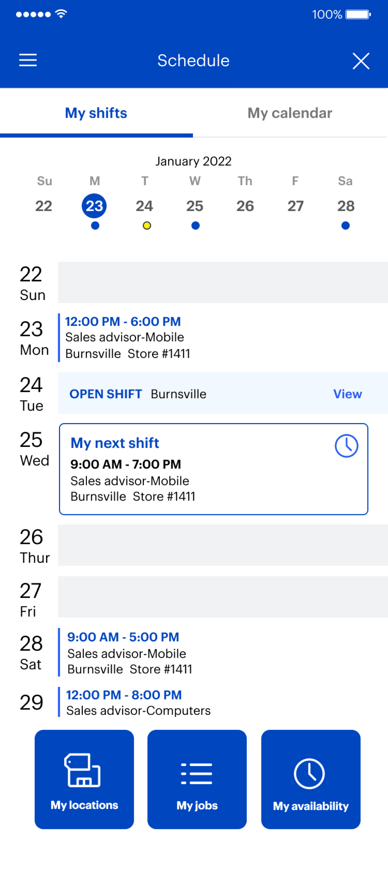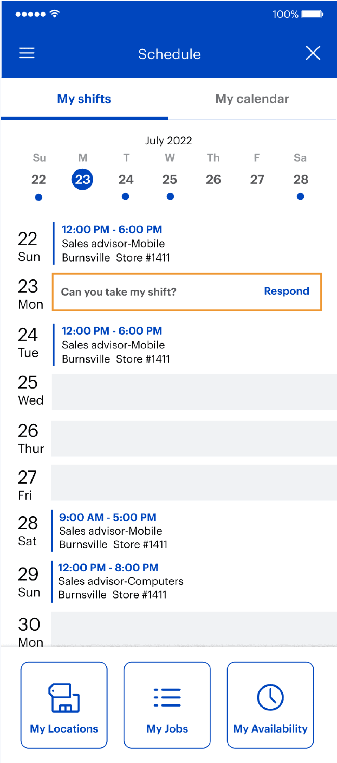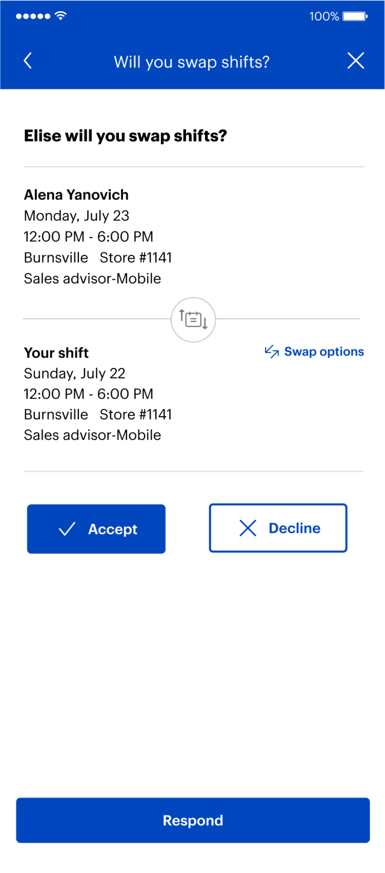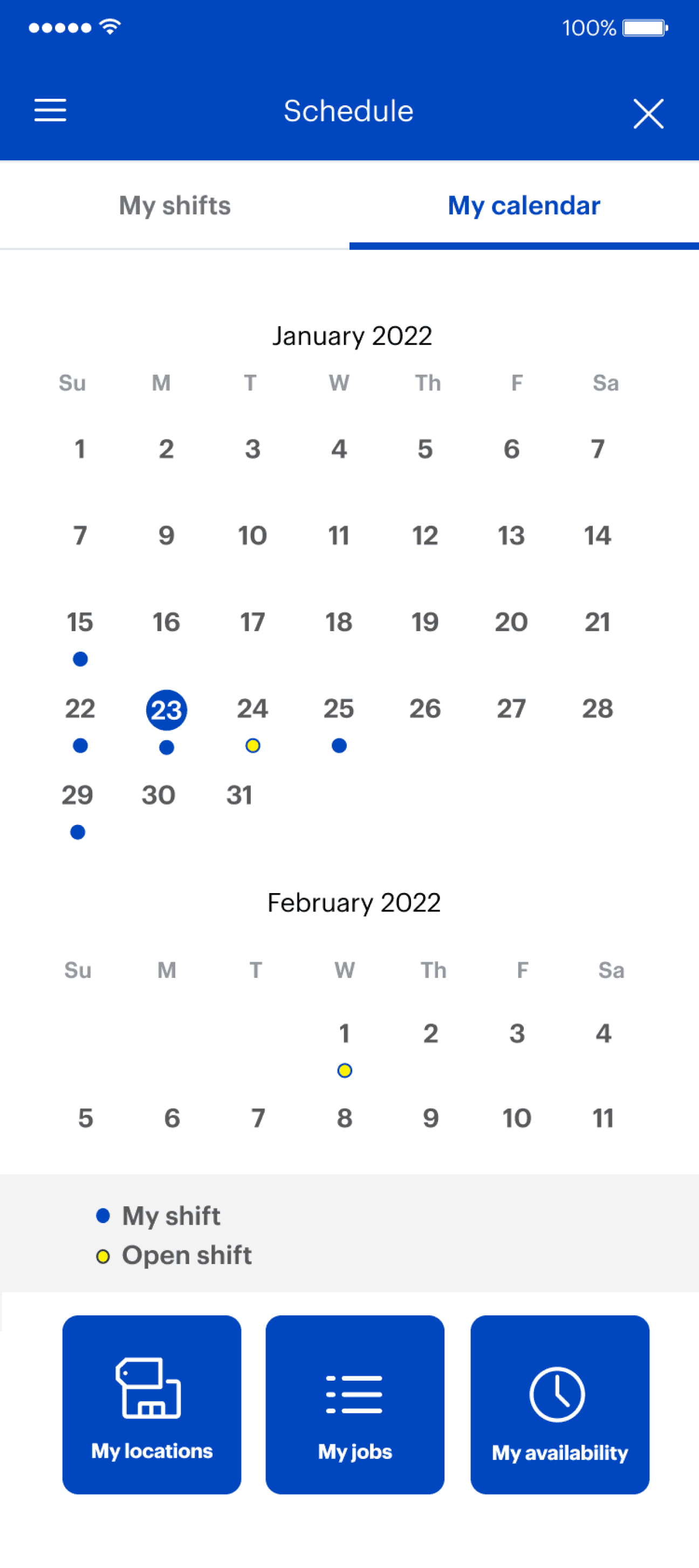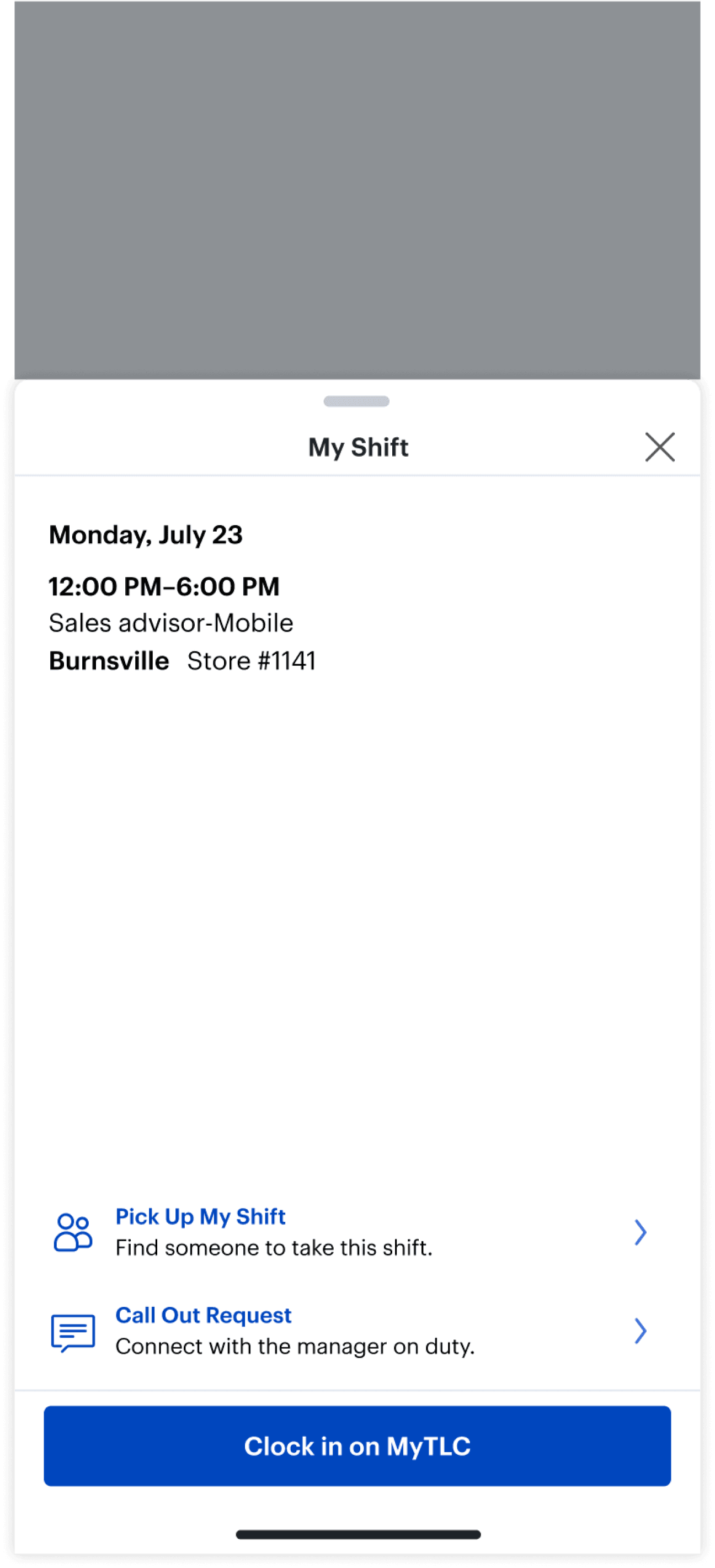 Whenever a user taps on a shift, no matter what view it is, they see the same modal that appears with new options for them.